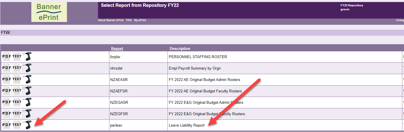 Select the latest Thursday, Leave Liability Report and click on PDF